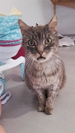 Si déjà tu me poses la question, oui je préfèrerais la nourriture d'avant, celle-ci n'est pas très appétente et je n'ai pas trop d'appétit. Un peu de thon me ferait plaisir, du poulet aussi. Lorsque je bats la queue ou que je fais des pipis à côté de la litière, ou encore lorsque je vous mords, c'est avant tout parce que j'ai besoin qu'on me laisse tranquille dans ces moment-là, la douleur est un peu plus accentuée et j'ai besoin de m'isoler pour gérer la situation.