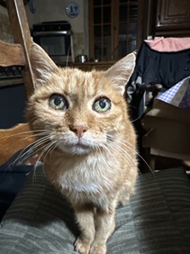 Mais avant de répondre à ses questions, j'ai envie de lui dire qu'il ne doit pas continuellement se torturer l'esprit à mon sujet, je mène ma petite vie de félin et je suis un chat heureux. Je ne manque de rien, je suis aimé, choyé et respecté, même si je n'aime pas qu'on me trifouille pour nettoyer les yeux, mais dans l'ensemble on prend bien soin de moi et je suis content d'être chez vous.