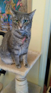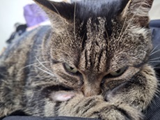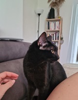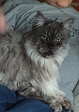 Nos balades en voiture , tu te mettais en califourchon vers l’arrière pour sentir le vent sur ta tête du cabriolet . Tu as accepté d’abord le chat errant Piloute qui est devenue ton amie , ta compagne quand j’étais à l’hôpital . Je te voyais pendant les séjours grâce a la caméra mais j’osais pas appelé peur que tu m’entendes . Danielle s’est occupée de toi .