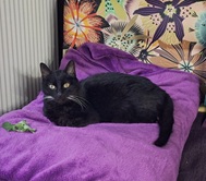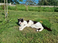 La rencontre avec Rigolo s'est faite sur un chemin gris et sans lumière. Il était assis, figé à cet endroit et le regard triste. Je me suis approchée doucement pour ne pas l'effrayer, je l'ai appelé par son nom et dès le 1er appel il a levé la tête vers moi et ses yeux si tristes reprirent une lueur d'espoir. Je me suis présentée et lui ai expliqué que sa gardienne m'envoyait à lui pour lui donner des messages et lui poser quelques questions. Avant même que je ne lui lise le contenu, il est venu à côté de moi tout en poussant quelques petits miaous pour me dire :