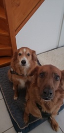 Puis je me suis levée et j'ai appelé Josh par son nom. Dès le premier appel j'ai eu un retour de petits aboiements, et tous les chiens autour de lui se sont écartés pour me laisser la place de m'approcher, et arrivée à sa hauteur je me suis arrêtée et pas surprise j'ai vu qu'ils étaient 2 à m'attendre, et Djin s'est tout de suite rapproché de moi pour me dire :