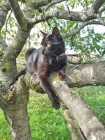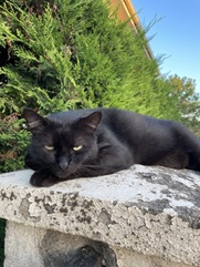 Puis je me suis levée et j'ai appelé Félix doucement par son nom. Dès le premier appel il s'est mis debout et les compagnons qui l'entouraient se sont écartés pour me laisser la place de m'approcher de lui. Il s'est étiré de tout son long en poussant quelques petits miaous, puis très rapidement avant que je ne bouge, il est venu à mes côtés pour me dire :